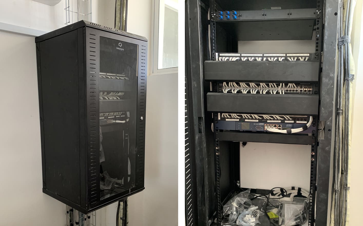 • Cableado estructurado marca Panduit, sistema de vigilancia IP marca Dahua con servidor de video.